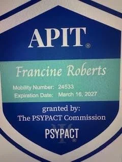 Available via telehealth in 43 STATES. Recognized member of Psypact cooperative. This is an agreement with the Association of State and Provincial Psychology Boards which allows me to offer services in the following states: AL, AZ, AR, CO, CT, DE, DC, FL, GA, ID, IL ,IN, KS, ME, MD, MI, MN, MS, MO, MT, NE, MV, NH, NC, ND, CNMI, OH, OK, PA, RI, SC, SD, TN, TX, UT, VT, VA,WA, WV, WI, WY.