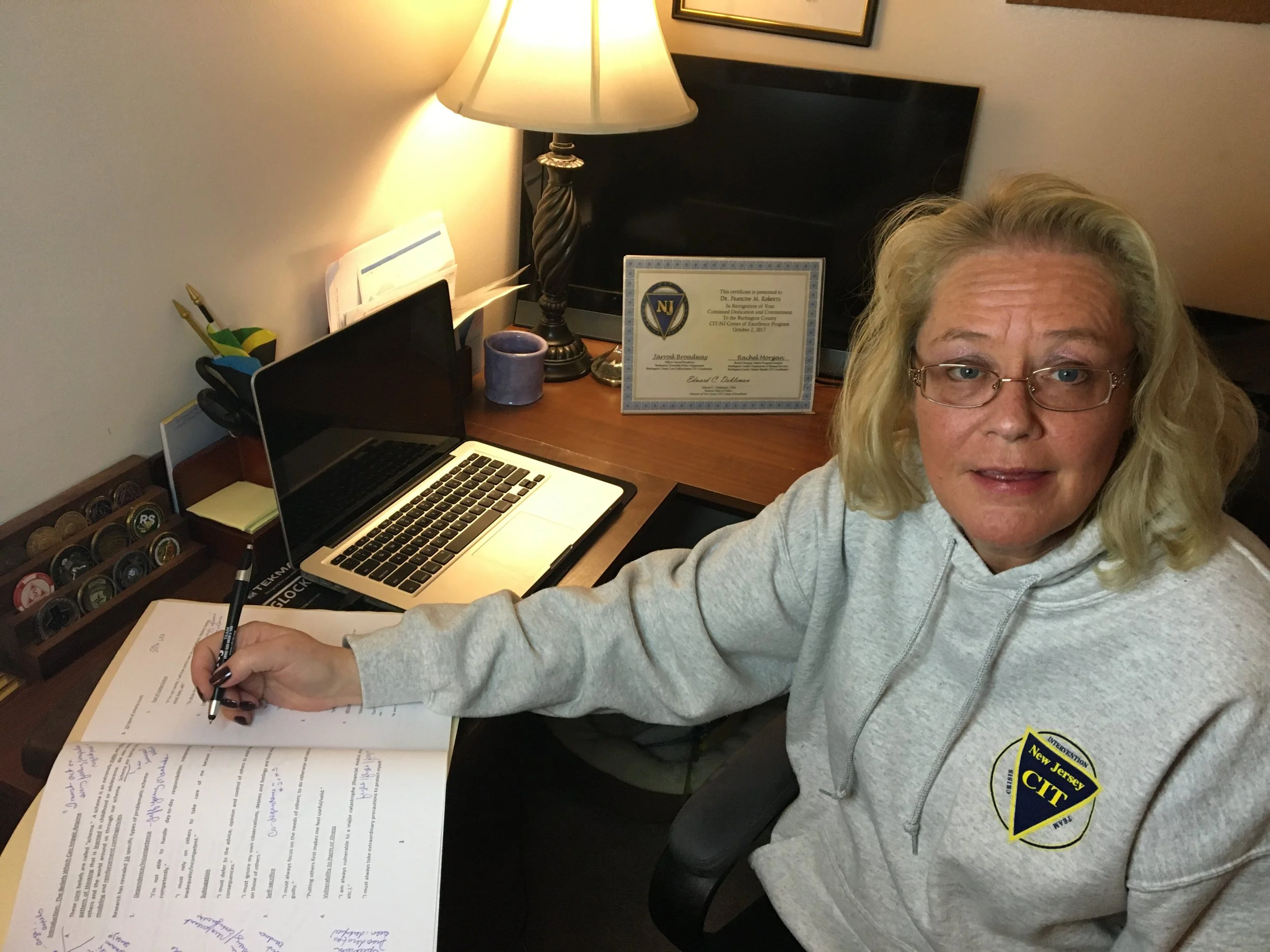 At various times in her career she taught psychology, nursing and general education students at undergraduate and graduate levels. She was a full time assistant professor at Thomas Jefferson University and an adjunct faculty member at Widener University and University of Cincinnati. More recently she became a certified police trainer for New Jersey and taught police, firefighters, medics and emt’s how to respond appropriately to people with mental health conditions.